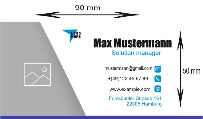 Wir drucken im europäischen Standard Format 85mm x 55 mm oder im US Format 90 mm X 50 mm.